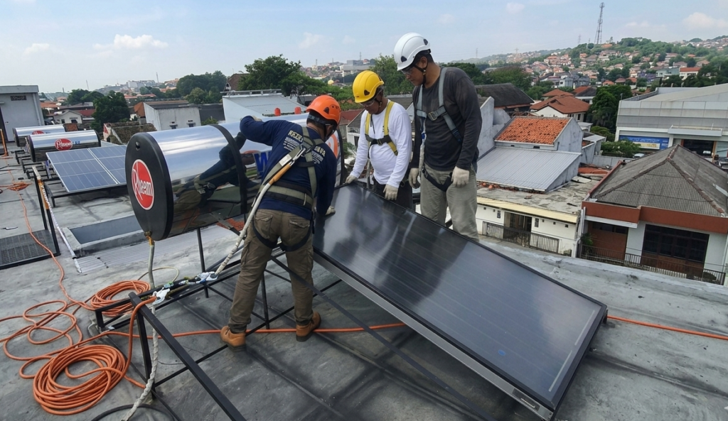 Solar Water Heater adalah sistem pemanas air yang memanfaatkan energi panas dari sinar matahari sebagai sumber utama. Alat ini bekerja dengan menyerap panas melalui panel kolektor, lalu menyalurkannya ke dalam tangki untuk memanaskan air. Karena tidak bergantung pada listrik sebagai sumber utama, penggunaan Solar Water Heater dapat membantu mengurangi konsumsi energi listrik, sehingga lebih efisien dan cocok digunakan di wilayah dengan paparan sinar matahari tinggi seperti Indonesia.